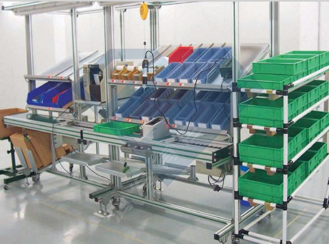 其實上面那種工作臺也是帶有輸送功能的,中間有一條輸送帶。這里講的輸送設(shè)備是專門用來輸送的,如滾筒線、皮帶線、摩擦線、網(wǎng)帶線等等。輸送設(shè)備選用工業(yè)鋁型材框架要考慮貨物的重量,根據(jù)載重選用不同厚度的工業(yè)鋁型材。